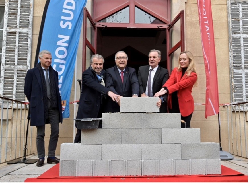 Jeudi 5 décembre dernier, la rue Sainte Victoire a accueilli la cérémonie de réhabilitation du centre de formation de la Croix-Rouge française en présence de Renaud Muselier, Président de la Région Provence-Alpes-Côte d'Azur, de Yann Bubien, Directeur Général de l’Agence Régionale de Santé Provence-Alpes-Côte d’Azur, de Philippe Da Costa, Président de la Croix-Rouge Française et Jean-Luc Chauvin, Président de la Chambre de Commerce et d’Industrie Aix-Marseille-Provence. Ils ont notamment pu réaliser une visite guidée et se pencher sur les plans architecturaux du futur institut de formation qui devrait voir le jour à la rentrée 2026.