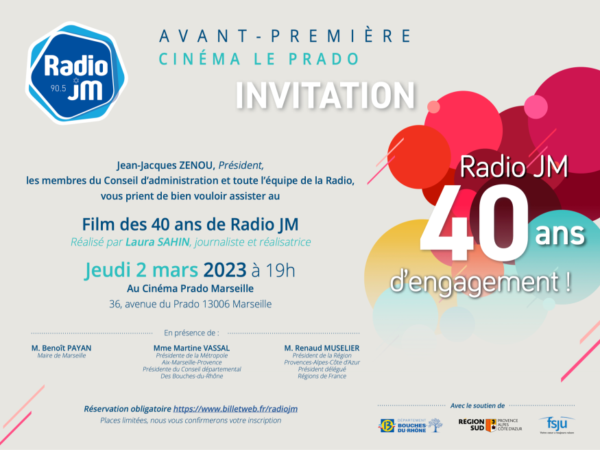 Vous êtes convié(e)s à une soirée exceptionnelle retraçant les 40 ans de la radio Juive de Marseille.